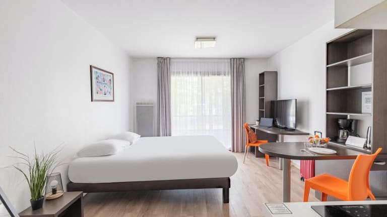 Das Appart'City Classic Nantes - Carquefou bietet insgesamt 111 Zimmer auf 2 Etagen. Die Zimmer sind modern und komfortabel eingerichtet und verfügen über eine Klimaanlage. Einige Zimmer haben einen Balkon, auf dem Gäste entspannen können. Die Zimmer verfügen über ein Doppelbett oder ein Schlafsofa und eine Kochnische mit Kühlschrank, Minikühlschrank, Mikrowelle und Tee-/Kaffeemaschine. Ein Schreibtisch, ein Telefon, ein TV-Gerät und WLAN (gegen Gebühr) sind ebenfalls vorhanden. Die Badezimmer sind mit einer Dusche oder Badewanne, einem Haartrockner und kostenlosen Kosmetikartikeln ausgestattet. Nichtraucherzimmer und rollstuhlgerechte Zimmer sind verfügbar.