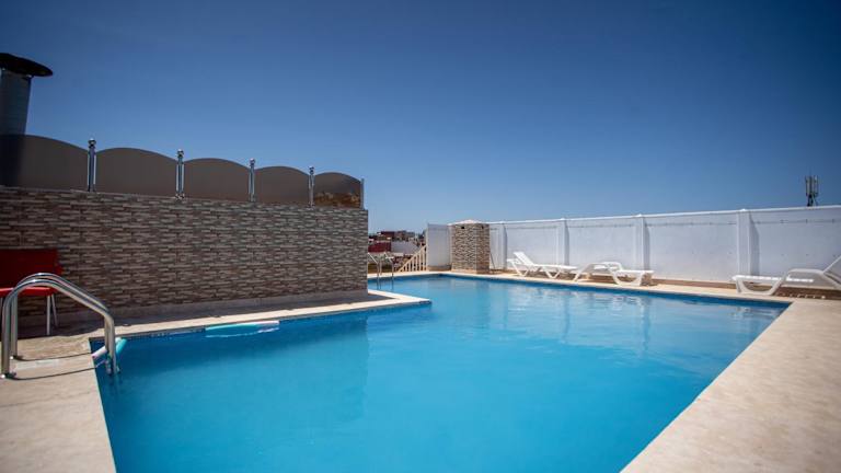 Die Dachterrasse mit Pool ist der perfekte Ort, um sich zu entspannen und den atemberaubenden Ausblick zu genießen. Das Hotel bietet auch eine 24-Stunden-Rezeption, um Ihnen bei allen Fragen oder Anliegen behilflich zu sein.