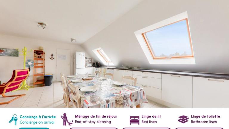 Die Ferienwohnung Appart pour 6 - 850m des plages Rohu & Govelins bietet Platz für bis zu sechs Personen und umfasst drei Schlafzimmer. Die Unterkunft verfügt über ein Badezimmer mit einer Badewanne, einen TV sowie eine gut ausgestattete Küche mit Kühlschrank und Geschirrspüler. Die Umgebung ist für Ruhe und Erholung geeignet, da Veranstaltungen wie Junggesellenabschiede nicht gestattet sind.