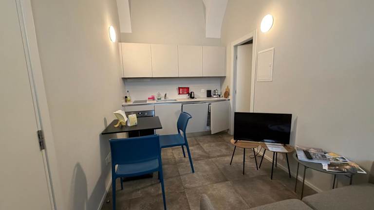 Die Ferienwohnung umfasst 1 Schlafzimmer, ein Wohnzimmer und eine voll ausgestattete Küche mit Kühlschrank und Kaffeemaschine. Ein Badezimmer mit Dusche und kostenlosen Pflegeprodukten sowie die Bereitstellung von Handtüchern und Bettwäsche sind ebenfalls vorhanden.