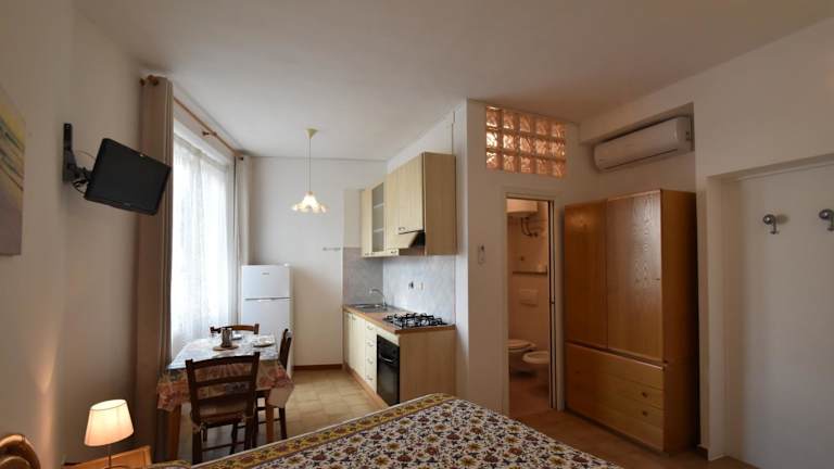Die Appartamenti Olivo bieten eine gut ausgestattete Ferienwohnung mit Klimaanlage, die sich ideal für einen Aufenthalt in der Küstenregion eignet. Die Unterkunft verfügt über einen Balkon mit Stadtblick sowie über ein Wohnzimmer.