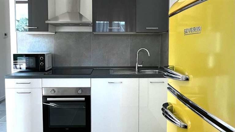 Die Wohneinheiten sind mit einer voll ausgestatteten Küche ausgestattet, die einen Kühlschrank, Geschirrspüler, Mikrowelle, Herdplatte sowie eine Kaffeemaschine umfasst. Es gibt jedoch keine spezifischen Informationen zu weiteren Verpflegungsmöglichkeiten.