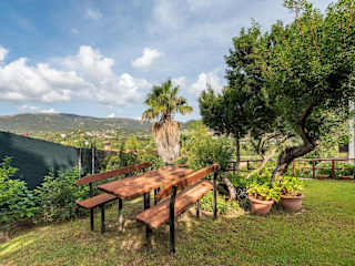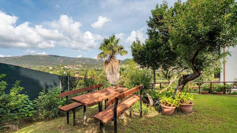 Appartamento Chia Grande bietet eine Ferienhaus-Unterkunft mit kostenlosem WLAN und Klimaanlage. Die Unterkunft ist von einem Garten umgeben und bietet Grillmöglichkeiten sowie Aussicht auf das Meer und die Berge.