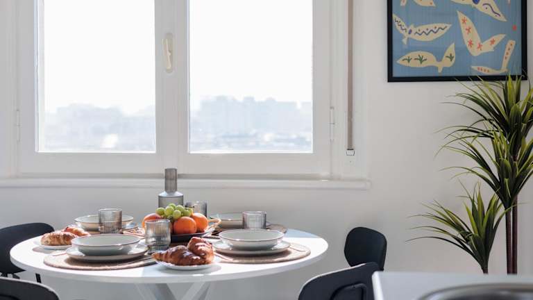 Die Ferienwohnung bietet ein Schlafzimmer, ein Wohnzimmer, eine voll ausgestattete Küche mit Kühlschrank und Kaffeemaschine sowie ein Badezimmer mit Bidet und Dusche. Zudem stehen eine Terrasse und ein Balkon zur Verfügung. Die Unterkunft stellt Handtücher und Bettwäsche bereit.