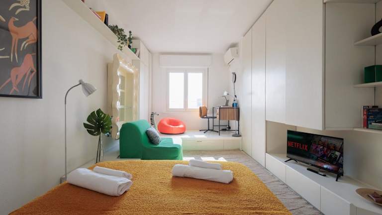Das Appartamento di Design con Vista su Via Tortona bietet einen ansprechenden Stadtblick und zeichnet sich durch eine moderne und stilvolle Einrichtung aus. Die Unterkunft ist eine Ferienwohnung, die 1960 erbaut wurde und mit Annehmlichkeiten wie kostenlosem WLAN und Klimaanlage ausgestattet ist. Es ist eine Nichtraucherunterkunft, in der Haustiere gestattet sind und die über einen Aufzug sowie Anbieter von Dienstleistungen für Behinderten verfügt.