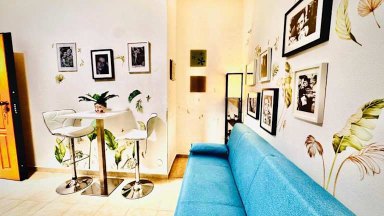 Die Ferienwohnung umfasst 1 Schlafzimmer, ein Wohnzimmer sowie eine voll ausgestattete Küche mit Kühlschrank und Kaffeemaschine. Das Badezimmer ist mit einem Bidet und einer Dusche ausgestattet. Handtücher und Bettwäsche werden bereitgestellt. Die Unterkunft verfügt zudem über einen Balkon und Klimaanlage.