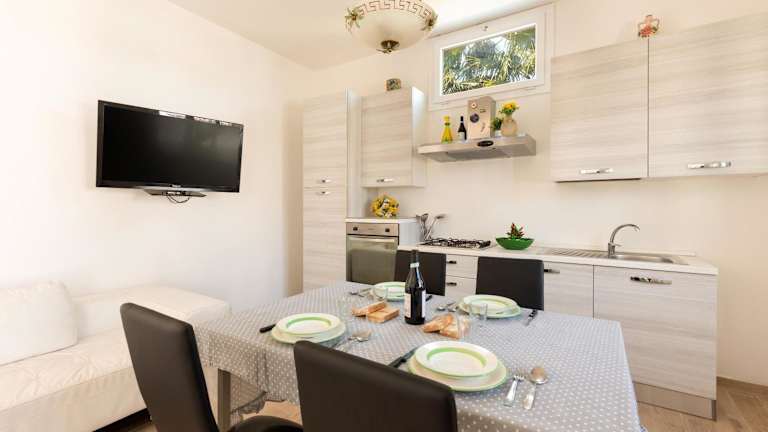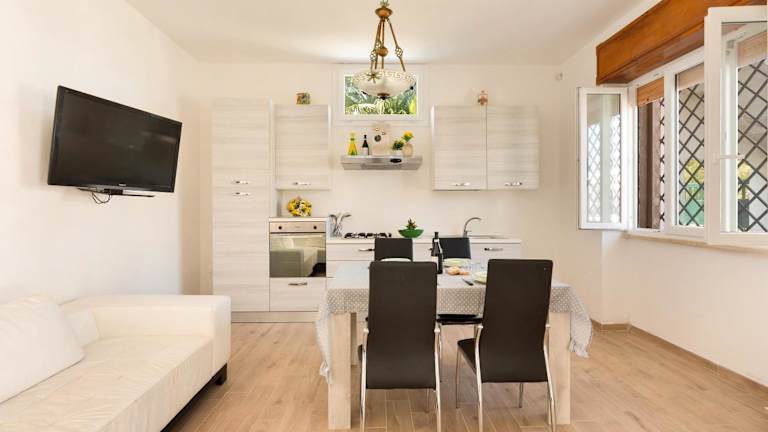 Das Appartamento Eleda by BarbarHouse bietet eine angenehme Unterkunft in Form eines Ferienhauses mit Klimaanlage. Die Unterkunft bietet eine Veranda oder ein Patio sowie kostenloses WLAN. Es sind keine Feierlichkeiten wie Junggesellenabschiede gestattet. Der Check-in ist ab 16:00 Uhr bis 20:00 Uhr möglich, und der Check-out kann zwischen 08:30 Uhr und 10:00 Uhr erfolgen. Die Unterkunft legt großen Wert auf Ruhe; aus diesem Grund sind in allen öffentlichen und privaten Bereichen Nichtraucherzonen.