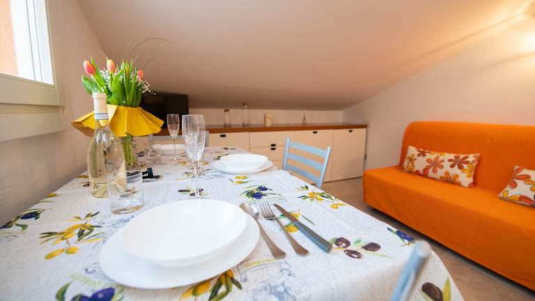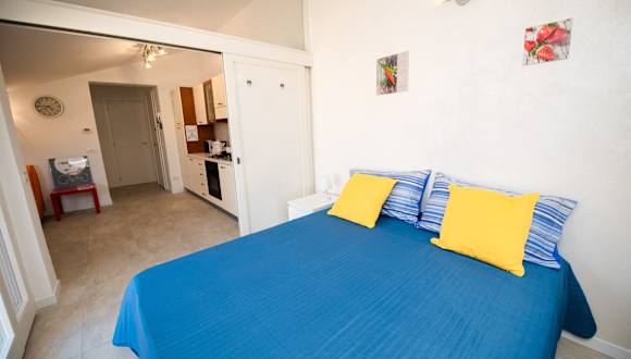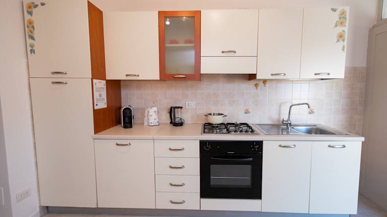 Die Ferienwohnung verfügt über ein Schlafzimmer, ein Wohnzimmer sowie eine voll ausgestattete Küchenzeile, die mit einem Kühlschrank und einer Kaffeemaschine ausgestattet ist. Das Badezimmer beinhaltet ein Bidet und eine Dusche. Handtücher und Bettwäsche werden zur Verfügung gestellt.