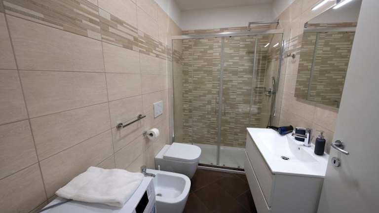 Die Ferienwohnung besteht aus zwei Schlafzimmern, einem Wohnzimmer sowie einem Badezimmer, das mit Bidet und Dusche ausgestattet ist. Handtücher und Bettwäsche werden bereitgestellt.