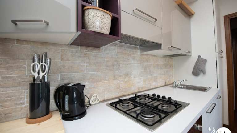 Die Ferienwohnung umfasst ein Schlafzimmer, ein Wohnzimmer und ein Badezimmer mit einem Bidet. Zur Ausstattung gehören ein Flachbild-TV, eine gut ausgestattete Küchenzeile mit Kühlschrank und Geschirrspüler sowie ein Balkon mit Poolblick. Handtücher und Bettwäsche werden zur Verfügung gestellt.