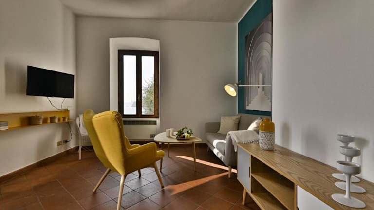 Appartamento Marieclaire - Theater Home bietet einen Garten mit Blick auf die Umgebung und kostenloses WLAN in allen Bereichen der Unterkunft. Die Ferienwohnung besteht aus einem Schlafzimmer und einem Badezimmer und ist mit Bettwäsche und Handtüchern ausgestattet. Ein Balkon mit Seeblick ergänzt das Angebot.