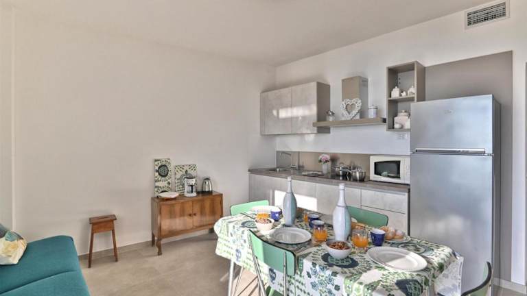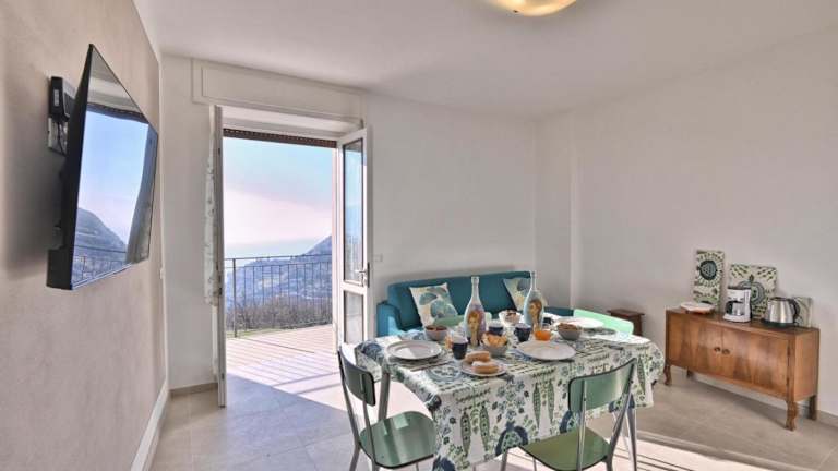 Die Ferienwohnung verfügt über eine voll ausgestattete Küche, einen TV mit Satellitenkanälen und einen Balkon mit Seeblick.