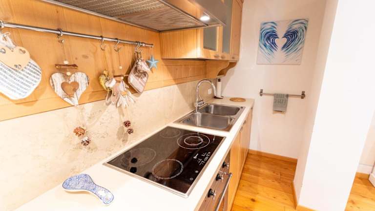 Die Ferienwohnung verfügt über 2 Schlafzimmer und 1 Badezimmer. Zur Ausstattung gehören Bettwäsche, Handtücher, ein Flachbild-TV, ein Essbereich sowie eine voll ausgestattete Küche. Eine Terrasse mit Blick auf die Berge sorgt für zusätzlichen Komfort.