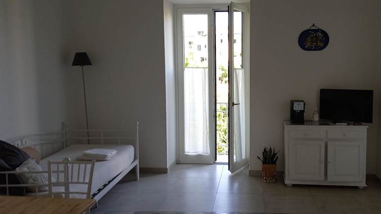 Die Ferienwohnung umfasst 1 Schlafzimmer und ein Wohnzimmer sowie eine voll ausgestattete Küchenzeile mit Kühlschrank und Kaffeemaschine. Das Badezimmer ist mit einem Bidet und einer Dusche ausgestattet. Handtücher und Bettwäsche werden bereitgestellt.