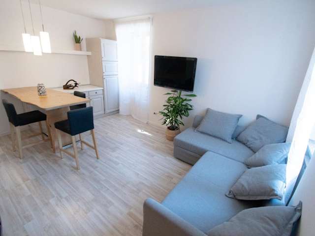 Die Ferienwohnung umfasst ein Schlafzimmer, ein Wohnzimmer mit einem Flachbild-TV sowie eine voll ausgestattete Küche, die mit einem Kühlschrank und einem Ofen ausgestattet ist. Zudem steht ein Badezimmer mit einem Bidet zur Verfügung. Handtücher und Bettwäsche können auf Anfrage gegen Aufpreis bereitgestellt werden.