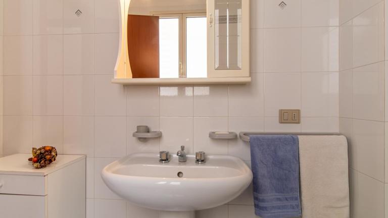 Appartamento vicino al mare ist eine Ferienwohnung mit einem Balkon, die eine Terrasse und Stadtblick bietet. Die Unterkunft umfasst zwei Schlafzimmer, ein Wohnzimmer sowie ein Badezimmer mit Badewanne. In der Ferienwohnung werden Handtücher und Bettwäsche zur Verfügung gestellt.