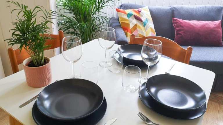 Das Appartement bietet ein Schlafzimmer, eine voll ausgestattete Küche mit Kühlschrank und Geschirrspüler, einen Flachbild-TV, einen Sitzbereich sowie ein Badezimmer mit Dusche.