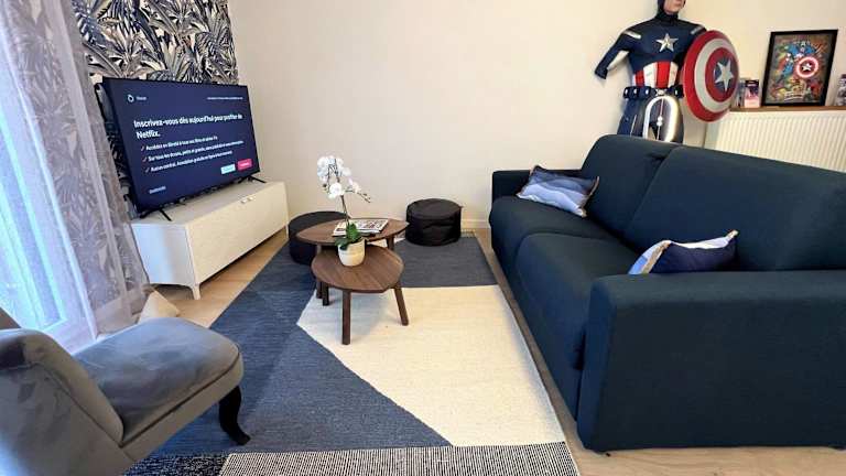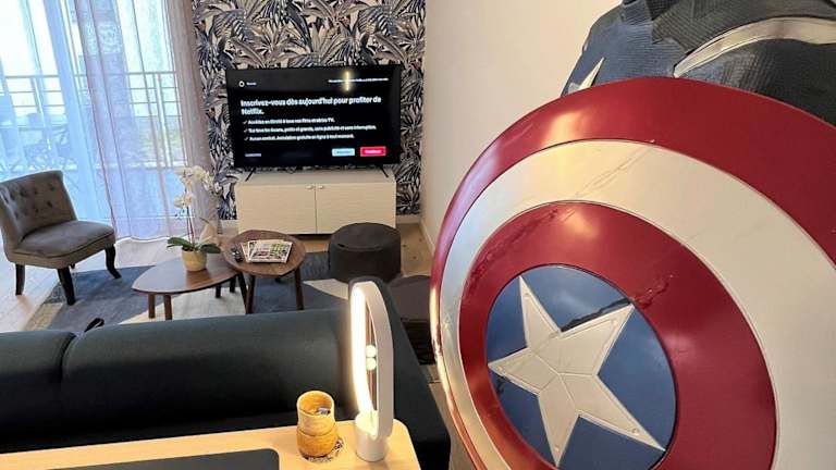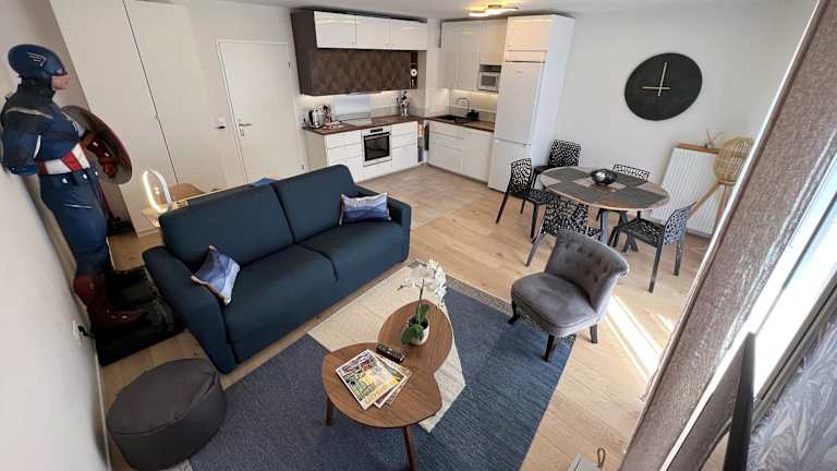 Die Unterkunft Appartement 6 pers Val d'Europe - Disneyland Paris - Captain America bietet Platz für bis zu sechs Personen und verfügt über einen Balkon sowie kostenlosen Privatparkplatz und kostenfreies WLAN. Es handelt sich um eine Ferienwohnung, die bequem für Familien oder Gruppen geeignet ist.