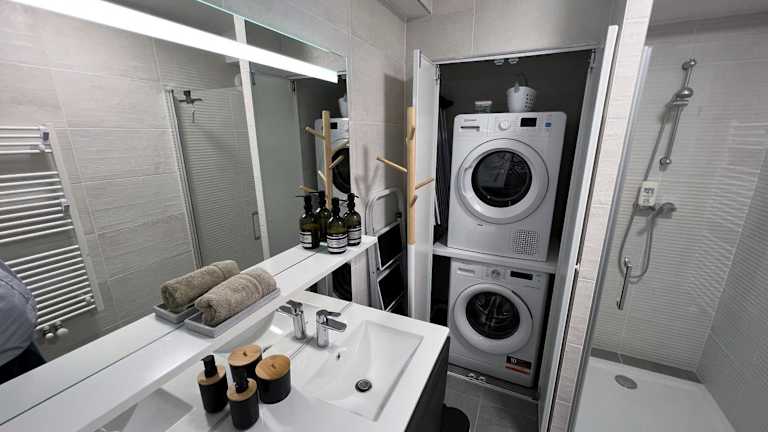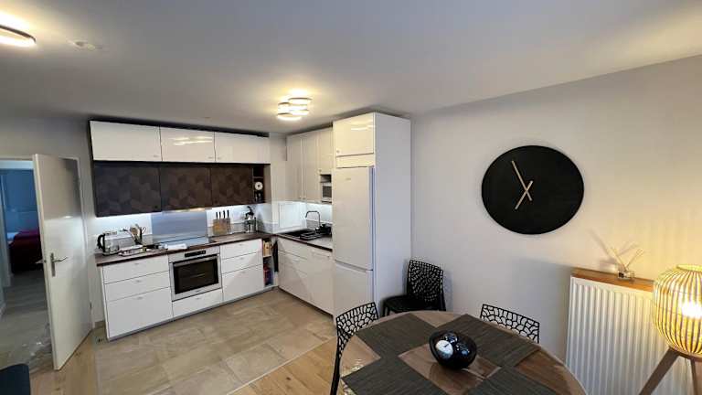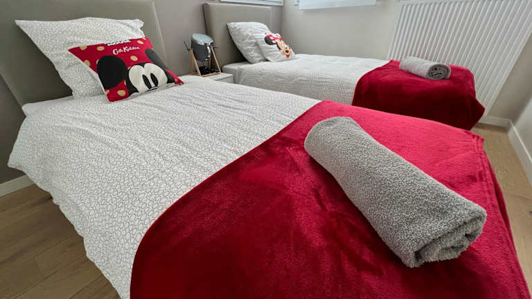 Die Ferienwohnung verfügt über zwei Schlafzimmer, ein Wohnzimmer und eine voll ausgestattete Küche mit Kühlschrank und Kaffeemaschine. Ein Badezimmer mit Dusche und kostenlosen Pflegeprodukten ist ebenfalls vorhanden. Handtücher und Bettwäsche werden bereitgestellt.