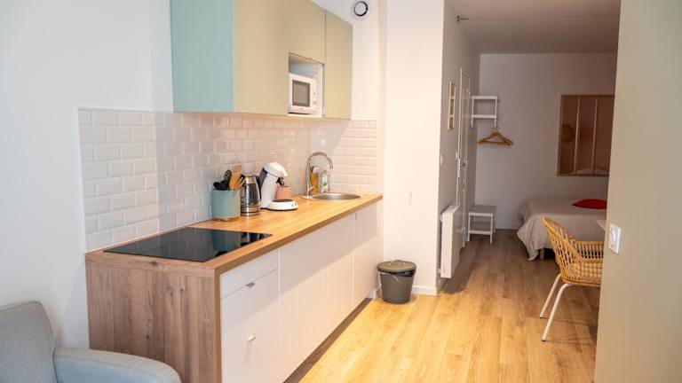 Im Appartement à Vienne können Sie Ihre eigenen Mahlzeiten zubereiten und in Ihrer eigenen Küche genießen. Die voll ausgestattete Küche bietet alles, was Sie für die Zubereitung Ihrer Lieblingsspeisen benötigen. Alternativ können Sie auch in einem der Restaurants in der Umgebung speisen und die lokale Küche genießen.