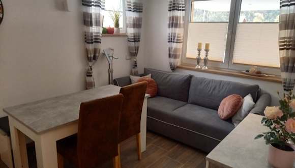 Die Ferienwohnung verfügt über eine voll ausgestattete Küchenzeile, die mit einem Kühlschrank und einer Kaffeemaschine ausgestattet ist. Grillmöglichkeiten sind ebenfalls vorhanden.