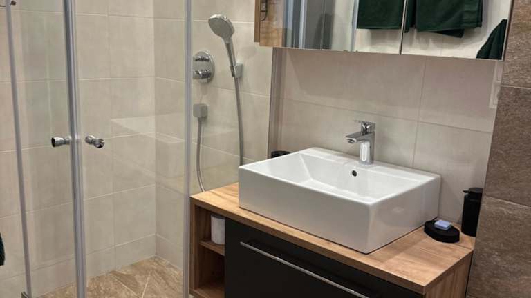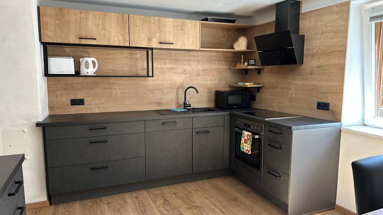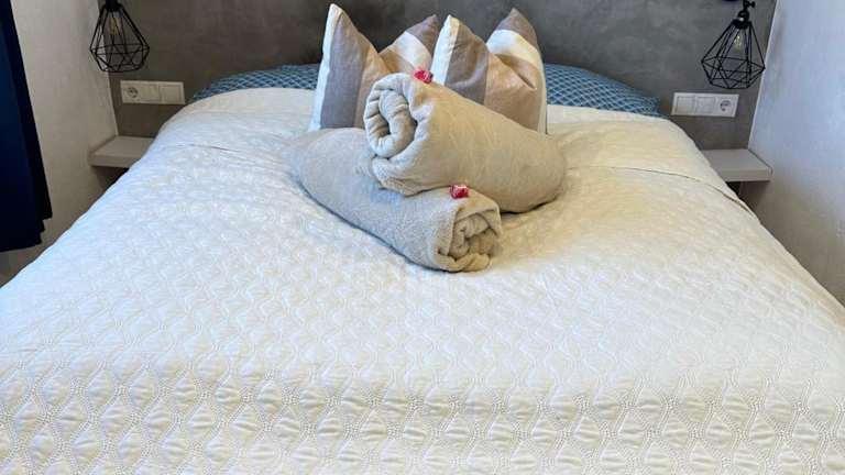 Die Ferienwohnung besteht aus einem Schlafzimmer, einem Wohnzimmer und einer voll ausgestatteten Küche mit Kühlschrank und Kaffeemaschine. Das Badezimmer ist mit einer Dusche und kostenlosen Pflegeprodukten ausgestattet. Handtücher und Bettwäsche werden zur Verfügung gestellt.