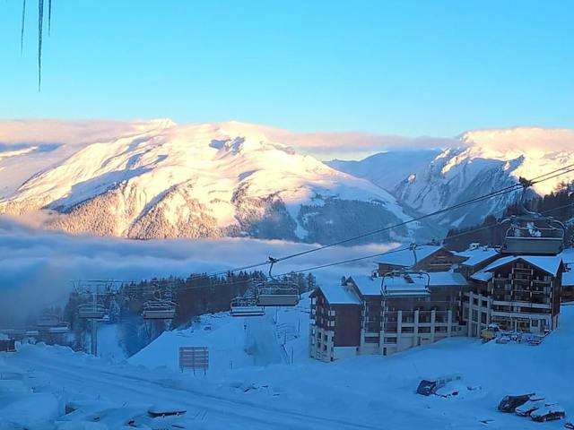 Das Appartement d'une chambre avec balcon aménagé à La Plagne Tarentaise bietet ein geräumiges 1-Zimmer-Apartment mit einem Balkon, der einen herrlichen Blick auf die Umgebung bietet. Das Apartment verfügt über einen komfortablen Sitzbereich, in dem Sie sich entspannen können, sowie einen TV und einen DVD-Player für Ihre Unterhaltung. Die Küche ist gut ausgestattet mit einem Kühlschrank, so dass Sie Ihre eigenen Mahlzeiten zubereiten können.