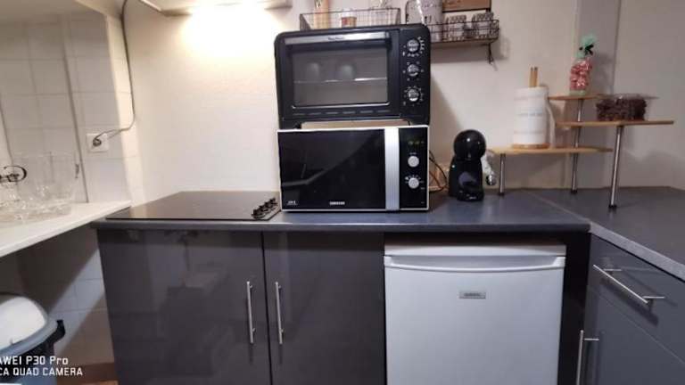 In der Ferienwohnung steht eine voll ausgestattete Küche zur Verfügung, die es den Gästen ermöglicht, eigene Mahlzeiten zuzubereiten. Es ist ein Essbereich vorhanden.
