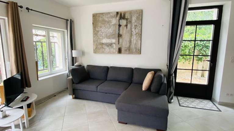 Die Unterkunft Appartement cour ancienne abbaye bietet einen Garten und eine Terrasse. Diese Ferienwohnung verfügt über ein Schlafzimmer und bietet eine angenehme Wohnatmosphäre.