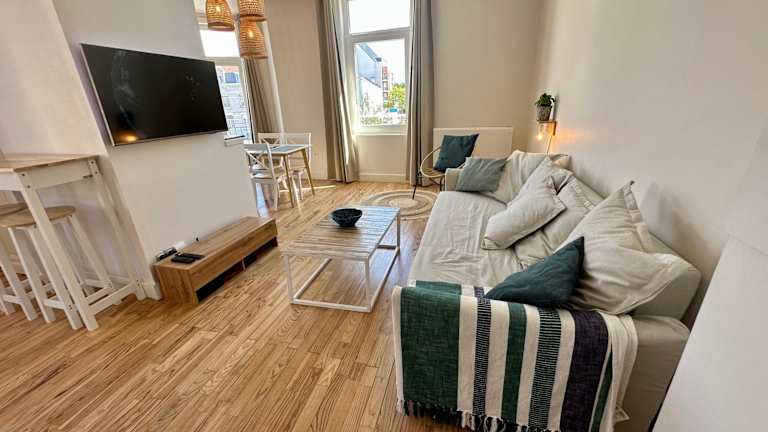 Das Appartement de Charme avec Balcon - Le Grand Large bietet eine stilvolle Unterkunft mit einem Balkon und Stadtblick. Die Wohnung umfasst ein Schlafzimmer und ein Wohnzimmer und wird von einem privaten Gastgeber betrieben. Es handelt sich um eine Nichtraucherunterkunft, die keine Junggesellen-/Junggesellinnenabschiede oder ähnliche Feiern gestattet. Check-in ist ab 16:00 Uhr möglich, während der Check-out bis 11:00 Uhr erfolgt. Es gilt ein Mindestalter von 18 Jahren für den Check-in.