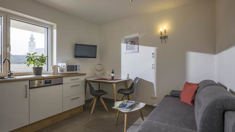 Die Ferienwohnung bietet ein Schlafzimmer, einen Flachbild-TV und eine gut ausgestattete Küche. Das Bad ist mit einer Dusche ausgestattet. Handtücher und Bettwäsche werden bereitgestellt.