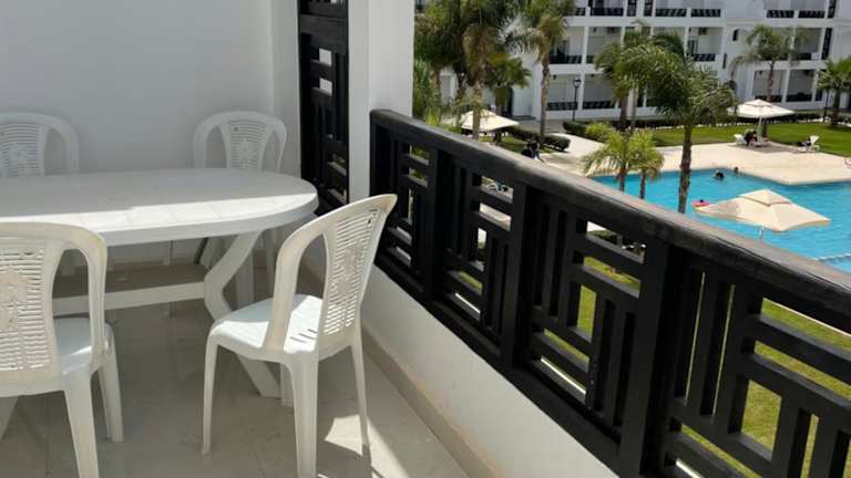 Appartement de luxe à loué Résidence Riad Saidia bietet Übernachtungsmöglichkeiten mit einem eigenen Pool, einem Balkon und Blick auf den Pool. Die Unterkunft wird von einem privaten Gastgeber geführt. Die Check-in-Zeiten sind von 13:00 bis 20:00 Uhr, während der Check-out zwischen 11:00 und 11:30 Uhr erfolgt. Es sind keine Junggesellen-/Junggesellinnenabschiede oder ähnliche Feiern erlaubt.