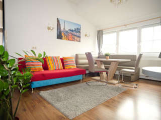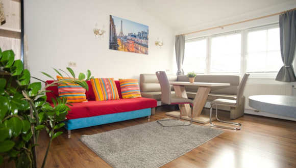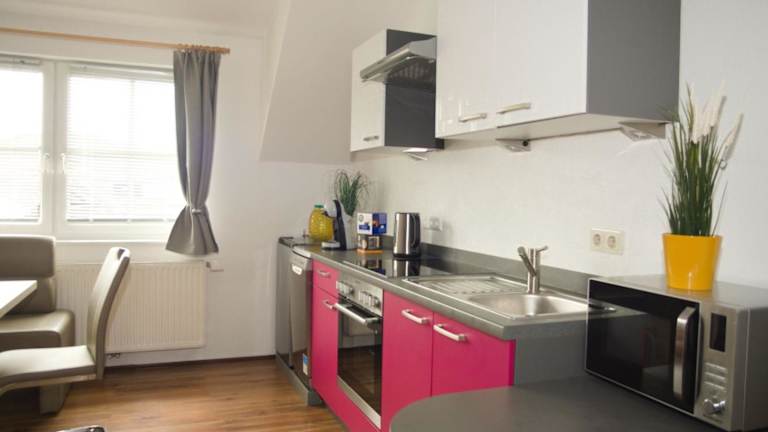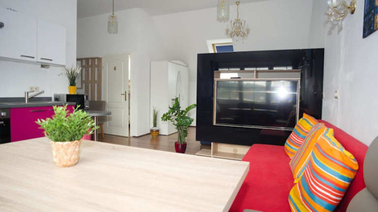 Die Ferienwohnung verfügt über ein Wohnzimmer mit einem Flachbild-TV sowie eine voll ausgestattete Küchenzeile.