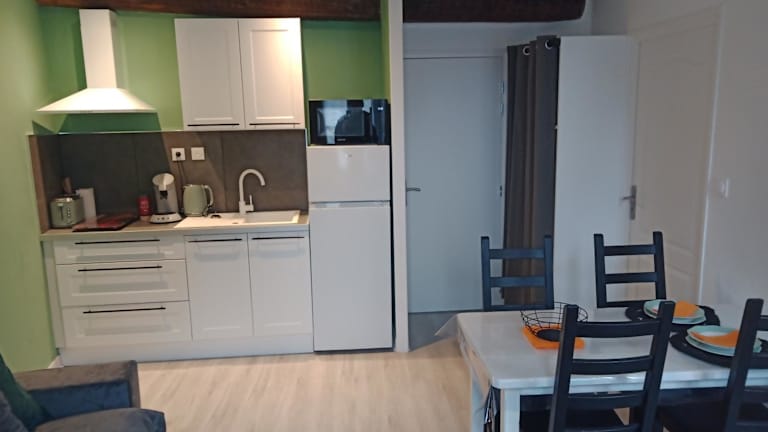 Die Ferienwohnung verfügt über ein Schlafzimmer, ein Wohnzimmer und eine voll ausgestattete Küche mit Kühlschrank und Kaffeemaschine. Außerdem gibt es ein Badezimmer mit Dusche und kostenlosen Pflegeprodukten. Handtücher und Bettwäsche werden bereitgestellt.