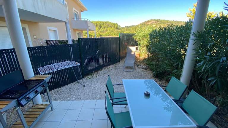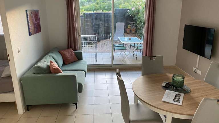 Das Appartement entre lac et mer avec piscine bietet eine angenehme Übernachtungsmöglichkeit in Form einer gut ausgestatteten Ferienwohnung, die über einen saisonalen Außenpool, einen Garten und eine Terrasse verfügt.