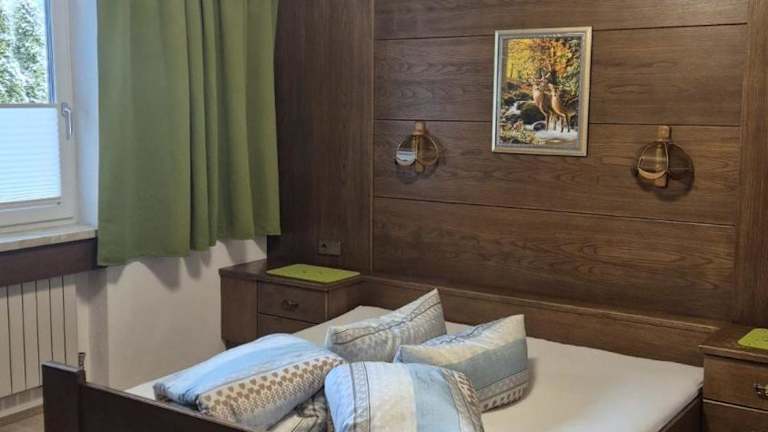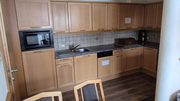 Die Ferienwohnung verfügt über 2 Schlafzimmer und 1 Badezimmer. Zur Ausstattung gehören Bettwäsche, Handtücher, ein Flachbild-TV mit Satellitenkanälen, ein Essbereich, eine voll ausgestattete Küche sowie ein Balkon mit Bergblick.