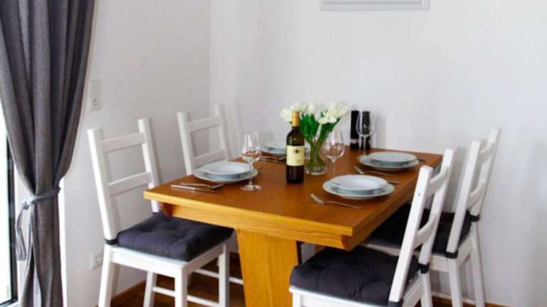 Die Ferienwohnung umfasst 2 Schlafzimmer, ein Wohnzimmer, ein Badezimmer mit einer Dusche sowie eine gut ausgestattete Küche mit Geschirrspüler und Ofen. Zur Ausstattung gehören ein Flachbild-TV sowie Handtücher und Bettwäsche.