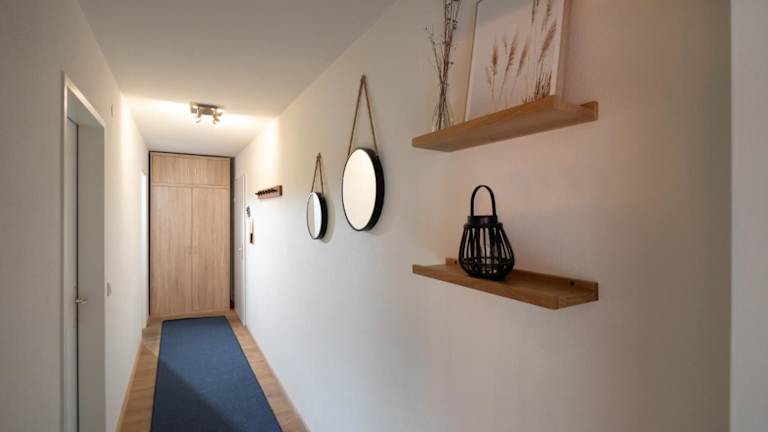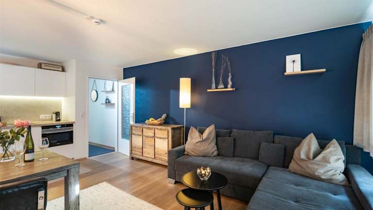 Die Ferienwohnung umfasst einen Balkon, ein Schlafzimmer, ein Wohnzimmer sowie eine gut ausgestattete Küche, die mit einem Kühlschrank und einem Geschirrspüler ausgestattet ist. Handtücher und Bettwäsche werden zur Verfügung gestellt.