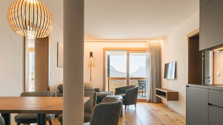 Krone Living ist ein Rückzugsort für alle, die das Unkomplizierte schätzen und das Wesentliche suchen. Die Appartements sind großzügig geschnitten, lichtdurchflutet und mit natürlichen Materialien ausgestattet – reduziert im Design, durchdacht im Detail. Der Garten ringsum ist weitläufig, mediterran bepflanzt und terrassiert – mit Liegewiesen, Palmen und viel Platz zum Durchatmen. Ein beheizter Pool, eine Panorama-Lounge mit Ausblick und kleine Ruheinseln machen das Draußensein besonders. Wer mag, spielt Tennis, nutzt den Fitnessraum oder entspannt im Saunabereich. Und wer einfach nur daliegen will, darf das auch – ganz ohne Programm. Nur echt, leicht und stimmig