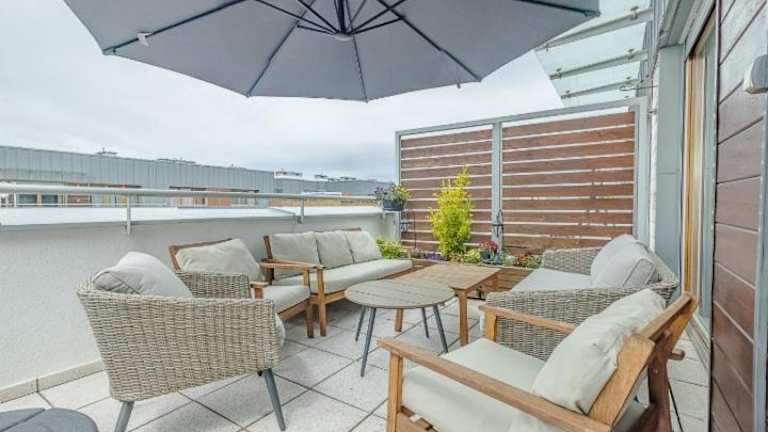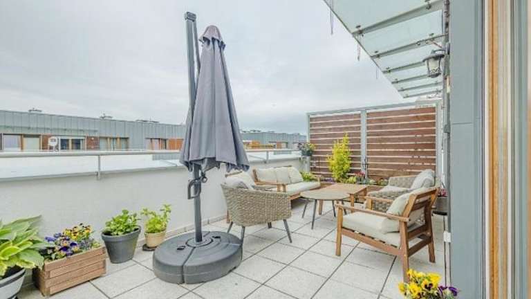 Die Ferienwohnung umfasst zwei Schlafzimmer, ein Wohnzimmer sowie ein Badezimmer mit Dusche und Haartrockner. Handtücher und Bettwäsche werden bereitgestellt.
