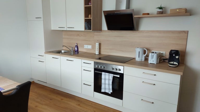 Appartement "Lavendel" für 2 bis 4 Personen mit einem Doppelzimmer und einer Wohnküche mit einer Couch, die zu einem Doppelbett ausziehbar ist. Appartement "Sonnenblume" für 4 bis 6 Personen mit zwei Doppelzimmer und einer Wohnküche mit einer Couch, die ebenfalls zu einem Doppelbett umgestaltet werden kann. Jede Küche in den Appartements ist mit Ess- und Kochgeschirr, einer Espressomaschine, einem Toaster und einem Wasserkocher ausgestattet. In der Dusche bzw. im Badezimmer sind Dusch- und Handtücher vorhanden.