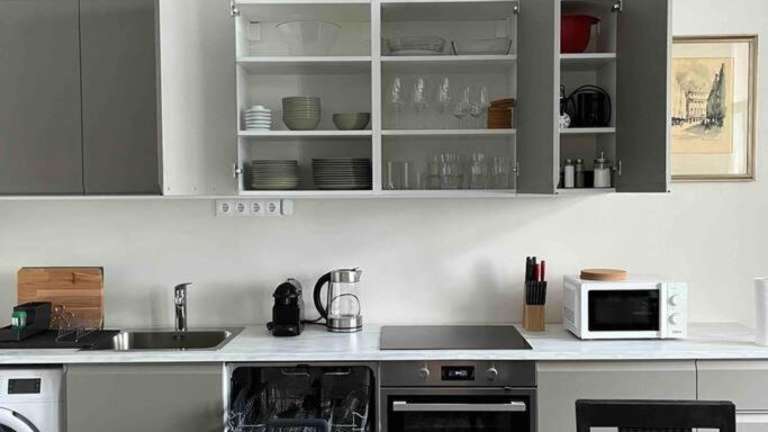 Die Ferienwohnung verfügt über ein Schlafzimmer, eine Küche mit Kühlschrank und Geschirrspüler, einen Flachbild-TV, einen Sitzbereich sowie ein Badezimmer mit Dusche. Handtücher und Bettwäsche werden bereitgestellt.