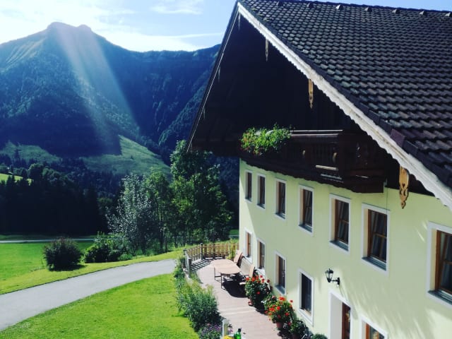 Unser Bio-Bergbauernhof ist in sehr ruhiger (am Ende einer Straße) und sonniger Lage auf 1050m Seehöhe und ist idealer Ausgangspunkt für Wanderungen, Radtouren, Ausflüge ( Stadt Salzburg, Fuschlsee, Wolfgangsee,.....) Im Winter sind wir direkt an der Piste des 2er Sesselliftes Spielberg gelegen! Gerne darf auch im Stall oder anstehenden Arbeiten mitgeholfen werden, Hasen, Meerschweinchen, Hühner, Katzen, Kühe und Co. freuen sich immer über einen Besuch, Streicheleinheiten oder etwas zu fressen!