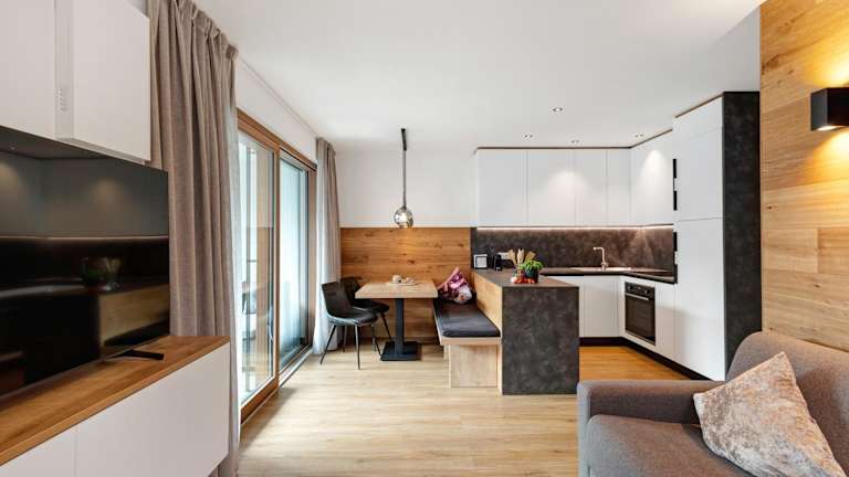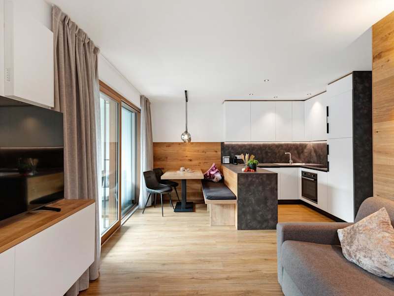 Die Ferienwohnung verfügt über eine Terrasse mit Bergblick, ein Schlafzimmer, ein Wohnzimmer sowie einen Satelliten Flachbild-TV. Die gut ausgestattete Küche enthält alle notwendigen Utensilien. Das Badezimmer ist mit einem Bidet und einer Dusche ausgestattet. Handtücher und Bettwäsche werden bereitgestellt.
