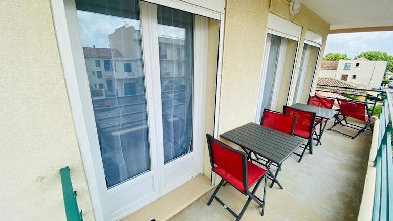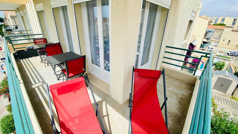 Das Hotel Appartement T2 4 Pers - Bord de Mer befindet sich nur 1 Gehminute vom Strand entfernt und ist nur 500 m vom komplett renovierten Stadtzentrum von Le Grau-du-Roi entfernt. Diese ideale Lage ermöglicht es Ihnen, sowohl die wunderschöne Küste als auch die charmante Stadt bequem zu erkunden. Der nächstgelegene Flughafen Montpellier ist nur 16 km entfernt, so dass Sie schnell und bequem an- und abreisen können.