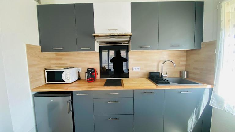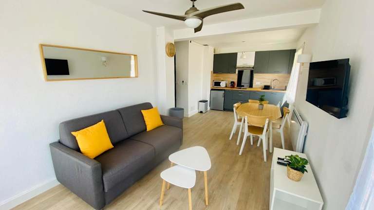 Das Hotel Appartement T2 4 Pers - Bord de Mer in Le Grau-du-Roi bietet Ihnen eine ideale Unterkunft mit seitlichem Meerblick, nur einen kurzen Spaziergang vom Strand und dem Stadtzentrum entfernt. Das Apartment verfügt über eine voll ausgestattete Küche, einen gemütlichen Wohnbereich und kostenfreies WLAN. Ein separates Schlafzimmer mit einem Doppelbett und einem Schlafsofa sorgt für eine angenehme Nachtruhe. Handtücher und Bettwäsche können gegen Aufpreis zur Verfügung gestellt werden.