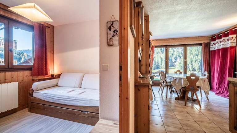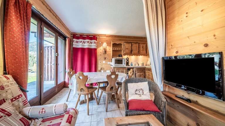 Appartement T3 Chatel bietet kostenlosen WLAN-Zugang und einen direkten Zugang zur Skipiste. Die Ferienwohnung zeichnet sich durch eine Veranda/Pati und Bergblick aus.