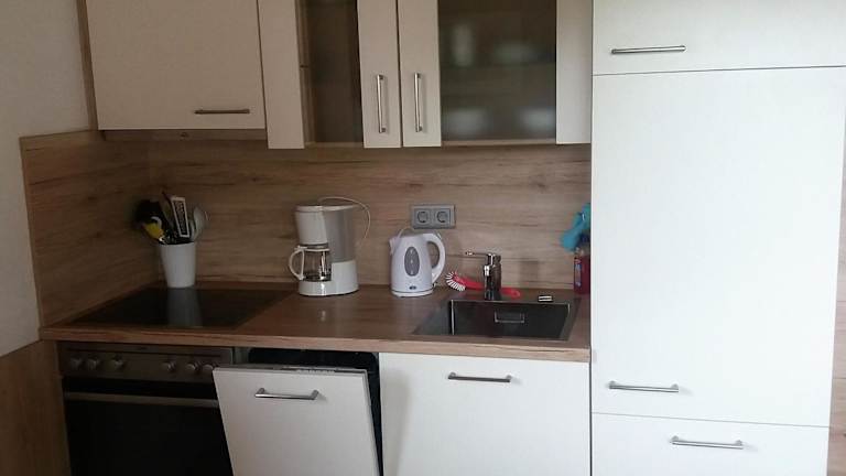 Die Ferienwohnung umfasst ein Wohnzimmer mit Sitz- und Essbereich, zwei Schlafzimmer sowie ein Badezimmer, das mit einer Dusche und einer Badewanne ausgestattet ist. Eine Küche ist vorhanden, die mit Kühlschrank, Geschirrspüler und Ofen ausgestattet ist. Zusätzlich sind Handtücher und Bettwäsche in der Unterkunft verfügbar.