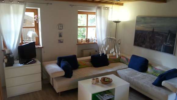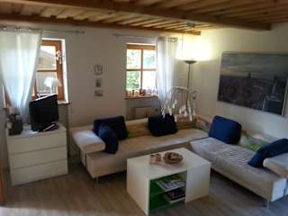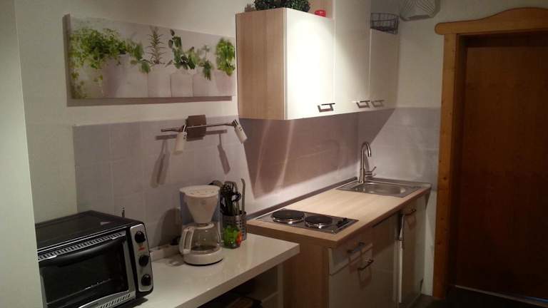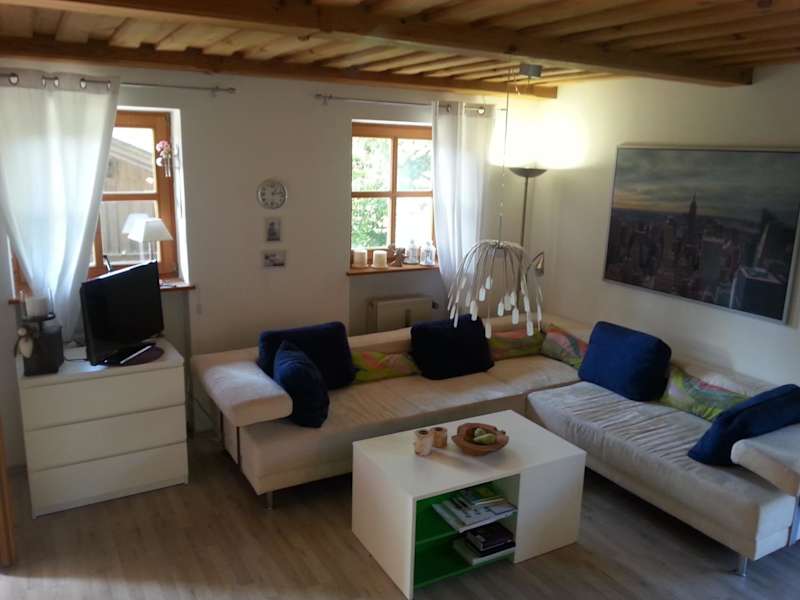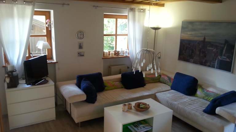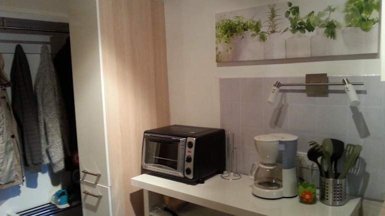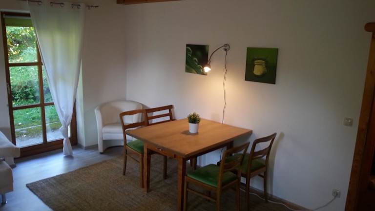 Die Ferienwohnung umfasst ein Schlafzimmer, ein Wohnzimmer und eine gut ausgestattete Küche mit Kühlschrank und Ofen. Zur weiteren Ausstattung gehören ein Flachbild-TV und ein Badezimmer mit Dusche. Handtücher und Bettwäsche werden zur Verfügung gestellt. Die Terrasse bietet Blick auf den Garten.