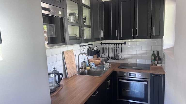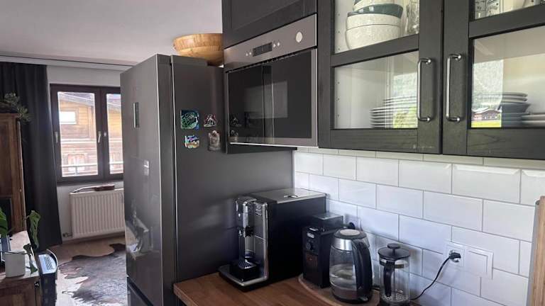 Die Unterkunft bietet eine Küche, die mit einem Kühlschrank, einem Geschirrspüler, einem Ofen und einer Kaffeemaschine ausgestattet ist.